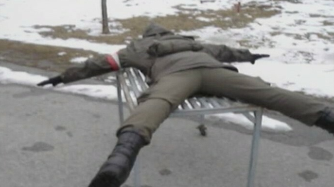 Judith Zdesar / Österreich 2007 / 23 min / OmdUSchauplatz des Films ist die österreichisch-ungarische Grenze, wo Rekruten des Österreichischen Bundesheeres ihren Dienst absolvieren. Mit Nightvision-Kameras und Handys filmen sie ihre Langeweile, Albernheiten und improvisierten Stunts. Judith Zdesar arrangiert diese Aufnahmen mit ruhigen Landschaftsbildern. Im Zentrum steht die totgeschlagene Zeit des Präsenzdiensts in der Randzone des Schengenraums. Die Soldaten reflektieren in banalen Monologen über ihre Situation und Zukunft. So entsteht ein Kriegsfilm ohne Krieg, in dem Sinnsuche und Absurdität unheimlich nahe rücken.