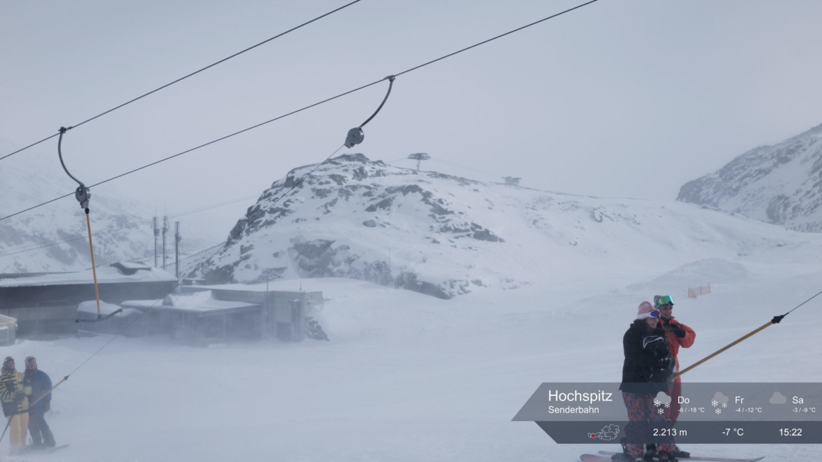 Bernhard Wenger / Österreich/Deutschland 2023 / 18 min / OmeUMit Erwartungen aufgeladene Sehnsuchtsorte liegen meist nur einen Schneeballwurf von der nächsten Enttäuschung entfernt. Und auf österreichischen Pisten finden die Enttäuschungen im Zwischenmenschlichen statt. Bernhard Wenger inszeniert seinen Kurzfilm als schmerzhaft realitätsnahe, aber auch humorvolle Episoden-Mockumentary, eingefangen von Wetterkameras. (Diagonale)