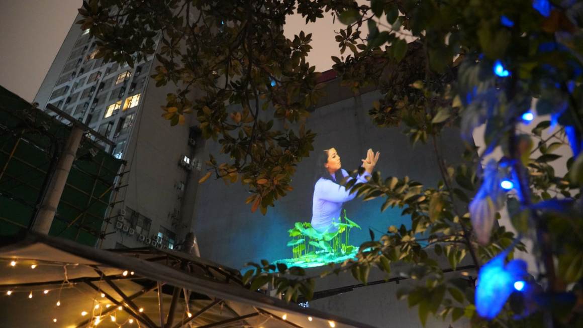 Cathy Mager / Großbritannien/China 2022 / 4:10 min / Omd/eU (SDH)Kollaboration zwischen der gehörlosen britischen Künstlerin Cathy Mager und der gehörlosen Performerin Alice Xiaoshu Hu. Nachdem Cathy Magers im COVID-19-Lockdown entstandener Film SIGN NIGHT – virtuell – bis nach China gereist war, kamen die beiden Künstlerinnen miteinander in Kontakt und schufen ein Filmpoem, das sich auf vielfältigen Bedeutungsebenen als Projektion auf der Fassade des Shanghai Duolun Museum of Modern Art entfaltete.