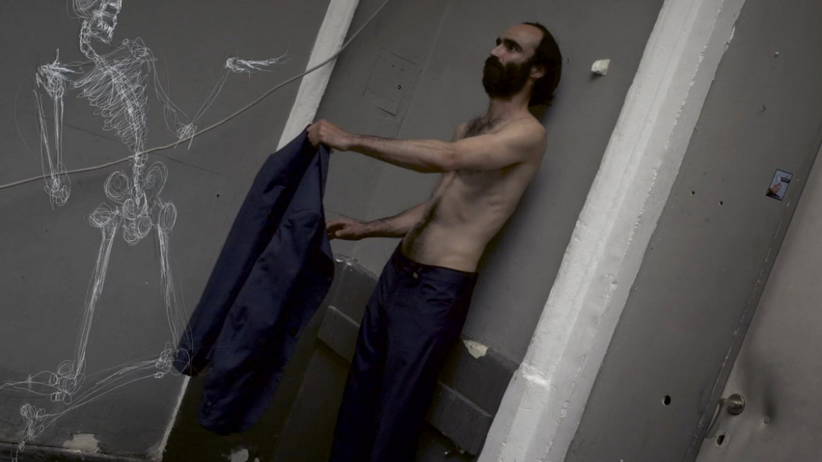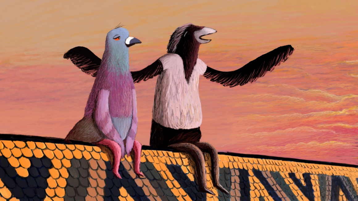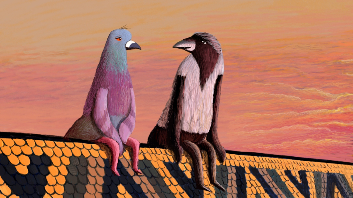 Eine Meditation über das Unglück: Zwei animierte Manifestationen derselben Figur interagieren, während diese der Maxime folgt: »Iss, trink, lass es dir gut gehen – weil wir morgen sterben werden.«