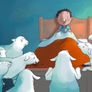 Ein kleiner Bub kann nicht und nicht einschlafen. Sein Vater rät ihm, Schäfchen zu zählen. Huch! Plötzlich befinden sich Dutzende Schafe rund um das Bett des kleinen Buben.