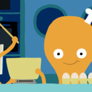 Die Krake will einen leckeren Pfirsichkuchen backen. Doch einer ihrer acht Arme scheint ganz eigene (Back-)Pläne zu haben.
