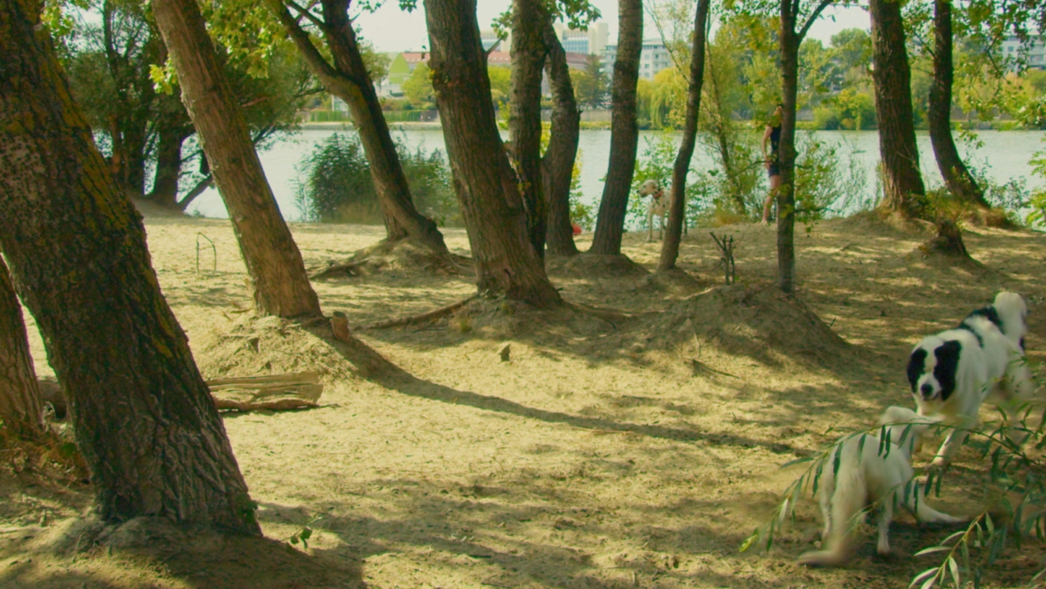Benita Buhl / Österreich 2023 / 20 min / OmeUMit viel Empathie entdeckt Benita Buhl am Hundestrand auf der Wiener Donauinsel das Kino als Möglichkeit, mit Menschen (und ihren Hunden) ins Gespräch zu kommen. Sie lauscht den Hundebesitzer*innen und beobachtet die spielenden Vierbeiner. Nebenbei entpuppen sich letztere als Freigeister, die sich weder von Menschen noch von der Kamera einfangen lassen. (Diagonale)
