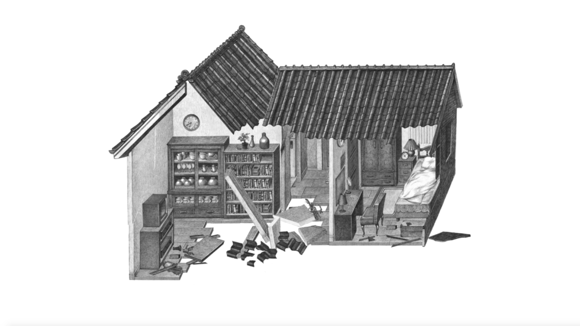 Joung Yumi / Südkorea 2022 / 8:30 min / kein DialogDa steht es, das Haus, mit Bleistift gezeichnet. Es beginnt auseinanderzufallen: Backsteine lösen sich aus der Mauer, die Haustür fällt aus den Angeln, Wände brechen weg. Alles versinkt im endlosen Nichts. Der Blick auf die Zimmer wird freigelegt. Möbel zersplittern, Gegenstände fallen zu Boden, das Dach rutscht ab. Am Ende bleiben Melancholie und die Möglichkeit zu gehen. (Berlinale)